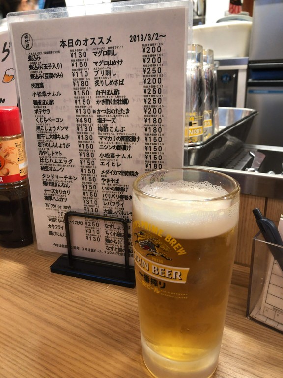 生ビールを頼むと飲んだ分だけ次回使える生ビール無料券をもらえます。